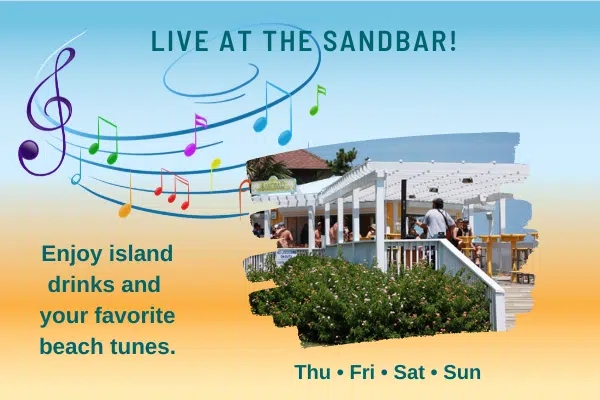 Head over to the Sandbar, behind the Beach Club, and enjoy some cool drinks and ocean front tunes. Popular, local talent plays everything from reggae to acoustic classics.